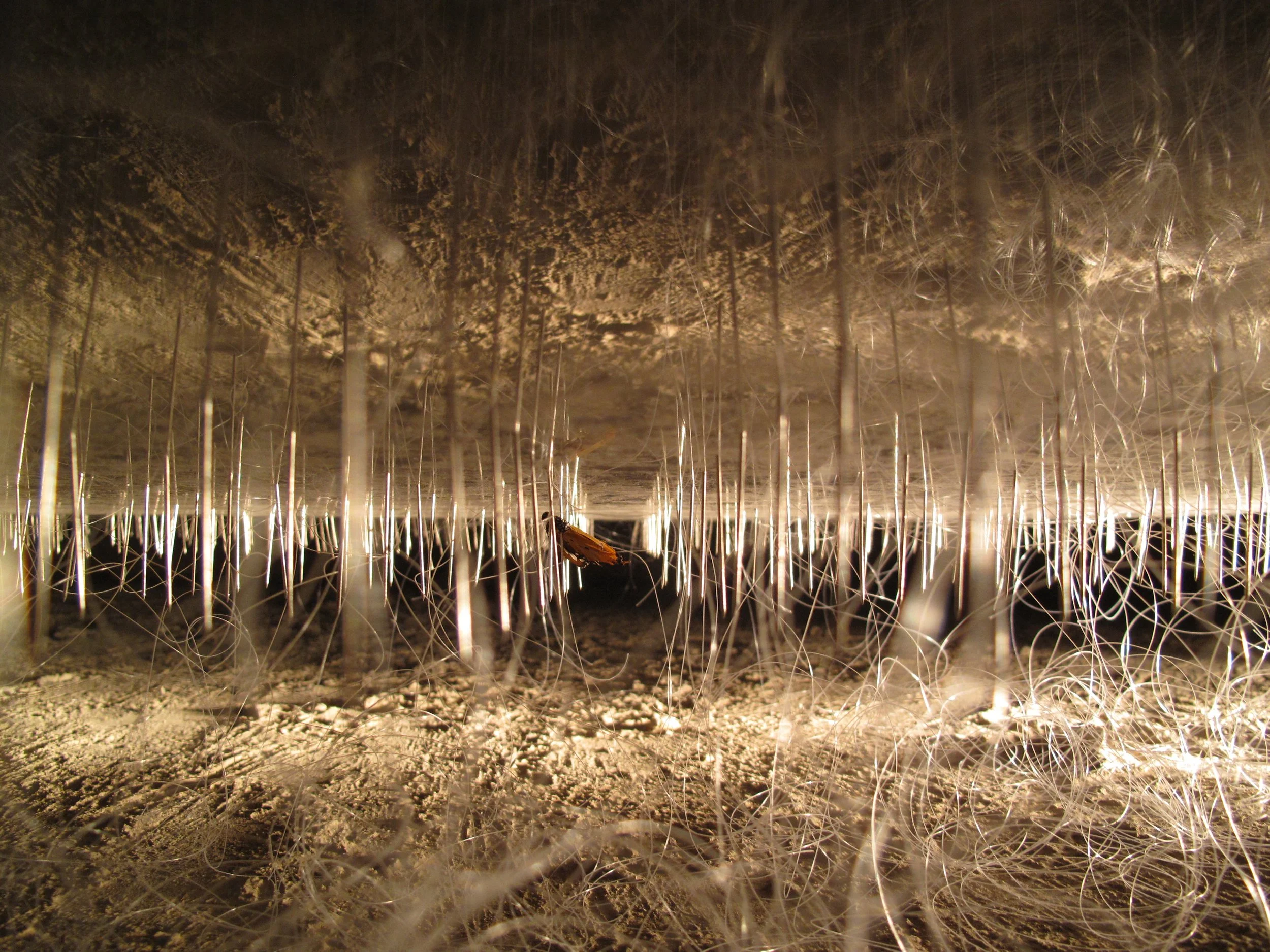 I create spaces that are both charged and playful, that speak of beauty, balance and proportion, all of which have the potential to violently and forcefully unwind before your eyes. A feeling that ones physical and emotional self is at risk of being caught up, tangled and captured by what surrounds one. The spaces explore cause and effect, discomfort, the arduous tasks committed to order the unfathomable. It is through the intense process driven nature of my work that I attempt to evoke and entice, twist and turn through aesthetics and materiality. I aim to unwind the ordered. My work is formed, deformed and reformed.